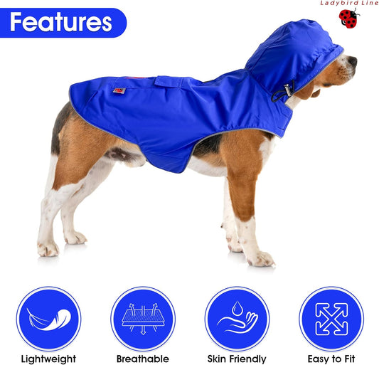 110-XS (Blue) Dog Raincoat, Adjustable Rain Jacket with Double Layer and Fleece Lining for Dogs & Puppies, Waterproof Dog Rain Coat, Poncho with Reflective Rim and Storage Pocket